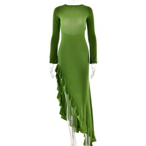 Summer new solid color round neck long sleeves backless high slit dress Fabric name: Knitted bright silk Pattern: solid color […]